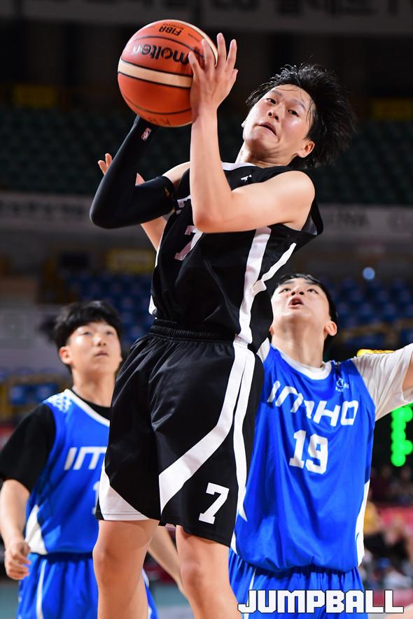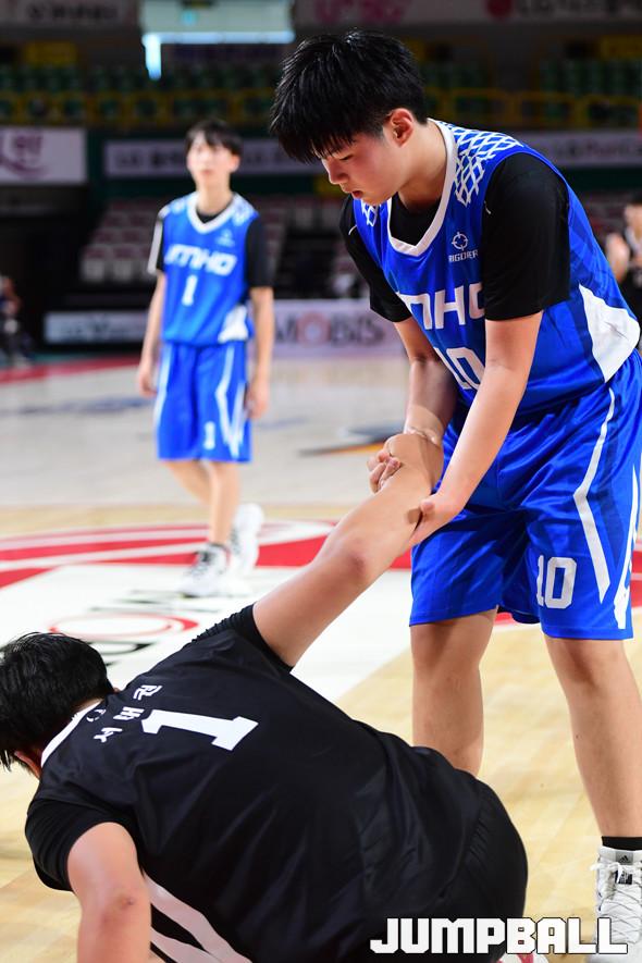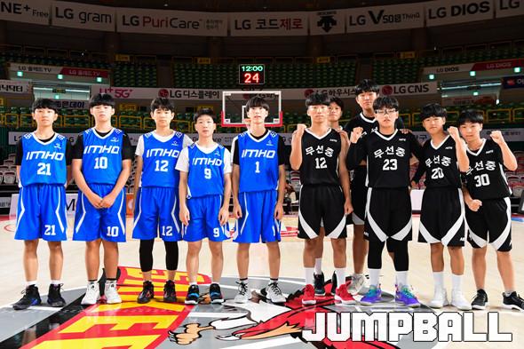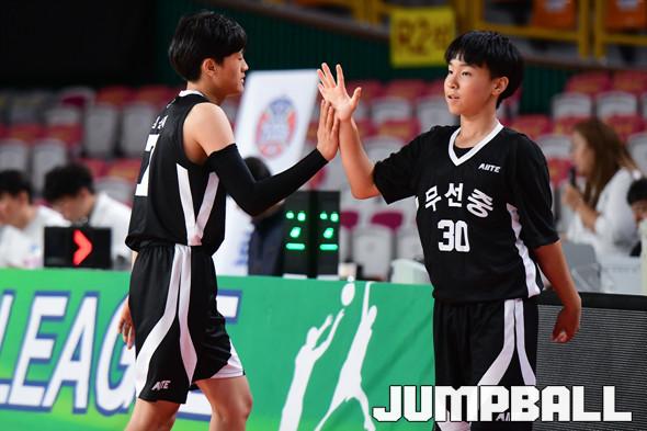 [점프볼=창원/박상혁 기자] 20일 창원실내체육관에서 '2019 KBL 스쿨리그' 창원지역 예선 경기가 열렸다. 중등부 1조 임호중과 무선중의 경기는 무선중이 임호중에 33대 11로 승리하였다. 무선중과 임호중 경기 화보.