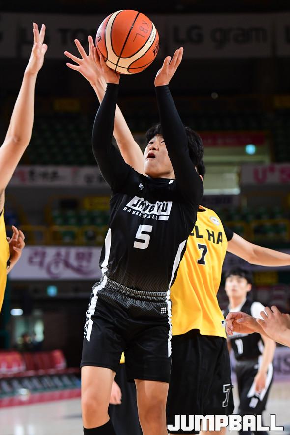 [점프볼=창원/박상혁 기자] 20일 창원실내체육관에서 '2019 KBL 스쿨리그' 창원지역 예선 경기가 열렸다. 고등부 2조 장유고와 김해율하고의 경기는 장유고가 김해율하고에 18대 11로 승리하였다. 장유고와 김해율하고 경기 화보.
