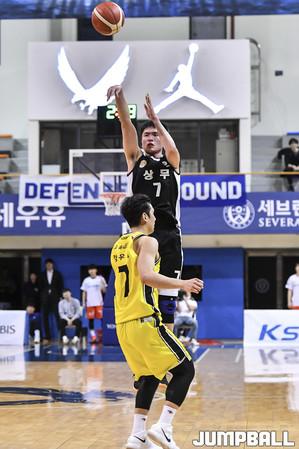 [점프볼=신촌/홍기웅 기자] 3일 연세대학교 신촌캠퍼스 체육관에서 열린 '2019-2020 KBL D리그' 창원 LG와 국군 상무의 경기. 상무가 87-83으로 승리를 거둔후 당당하게 걸어 나가고 있다.