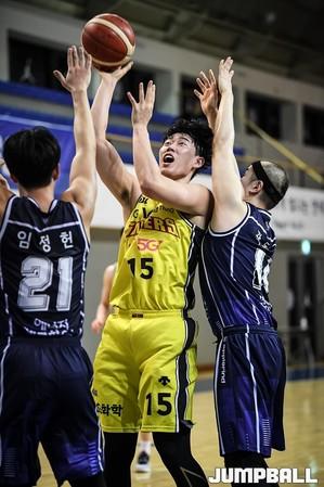 [점프볼=신촌/유용우 기자] 24일 연세대학교 신촌캠퍼스 체육관에서 열린 2019-2020 KBL D-리그 LG와 KCC의 경기, LG 주지훈이 레이업 득점을 올리고 있다.
