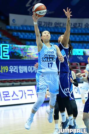 [점프볼=인천/박상혁 기자] 4일 인천도원실내체육관에서 열린 '하나원큐 2019-2020 여자프로농구' 신한은행과 삼성생명의 경기, 삼성생명 양인영이 점프슛을 시도하고 있다.
