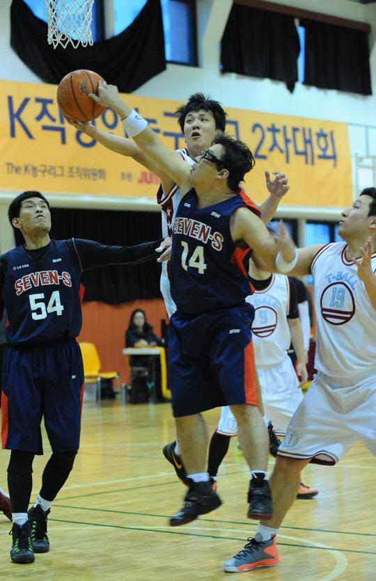 2월20일 관악고등학교 체육관에서 열린 2015 The K직장인농구리그(www.kbasket.kr) 2차대회 디비전2 15,16위 순위 결정전에서 이상윤(18점,5리바운드)과 이교혁(10점,1리바운드)이 모처럼 두 자리 수 득점을 기록하며 공격을 주도한 SK텔레콤이 LG CNS를 38-35로 따돌리고 디비전2 15위를 차지했다.