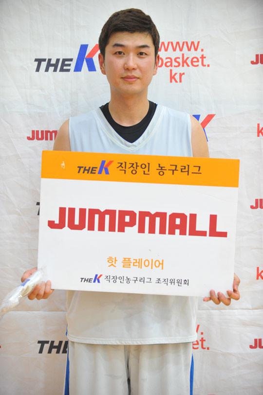 이 경기 점프몰(www.jumpmall.co.kr) 핫 플레이어에는 두산중공업 정양헌이 선정됐다. 3점슛 6개를 터트리며 시즌 최고의 활약을 펼친 정양헌은 "가사와 업무, 육아 등 각자의 사정에 팀 동료들이 100% 모이기가 어려워졌다. 오늘같은 경우도 많은 선수들이 결장하며 어려움이 예상됐다. 하지만 오늘까지 패하면 4강 토너먼트의 기회가 완전히 사라지기 때문에 어떻게든 승리하자고 동료들과 의기투합 했다. 다행히 수비에서 우리가 우세를 점하며 8개월 만에 승리할 수 있었던 것 같다"라고 승리 소감을 밝혔다.