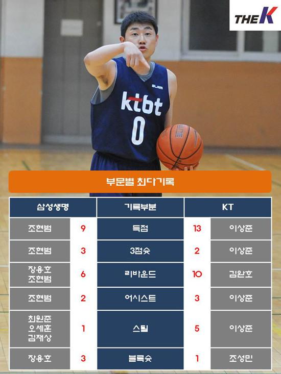 삼성생명은 김재삼이 3점슛을 적중시켰고 오세훈이 골밑을 적극 공략했다. 둘은 4쿼터 9점을 합작하며 팀 공격을 이끌었다. 노근배도 골밑에서 4점을 올리며 힘을 보탰다. 하지만, 동료들 지원이 너무 없었다. 전반에만 9점을 올린 조현범이 후반 무득점으로 침묵을 지킨 것이 컸다. 승기를 잡은 KT는 조성민, 이상준이 연이어 자유투를 적중시켜 51-38까지 점수차를 벌렸다. 반격에 나선 삼성생명은 오세훈, 노근배 연속득점으로 추격에 나섰다. 하지만, 연이은 실책 탓에 분위기 반전에 어려워했다. KT는 박인진이 쐐기득점을 올리며 승리를 확정지었다.