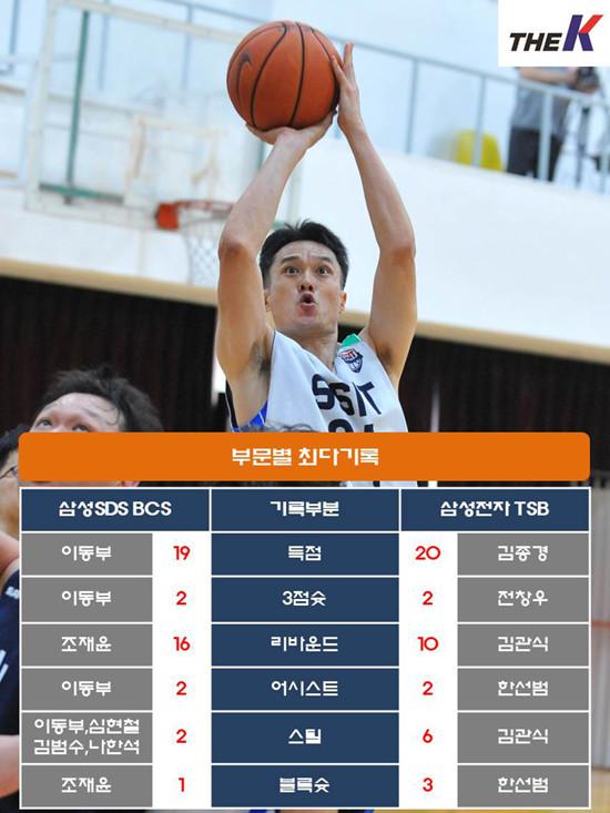삼성SDS BCS는 이날 경기 아쉬운 패배로 인하여 상승세가 한풀 꺾였다. 하지만, 내용에 있어서만큼, 최근에 좋은 분위기를 반영하고도 남았다. 이동부가 3+1점슛 2개 포함, 19점을 몰아쳤고, 나한석(6리바운드), 김범수가 각각 14점씩 올렸다. 조재윤은 양팀 통틀어 최다인 16리바운드를 걷어내며 골밑을 든든하게 지켰다. 이번 대회에서 유독 강조했던 끈끈한 팀워크가 다시 한 번 발휘되었다.