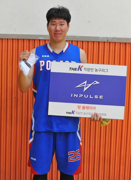 한편, 이 경기 인펄스(www.jumpmall.co.kr) 핫 플레이어에는 3점슛 2개 포함, 팀내 최다인 20점을 올리며 맹활약한 101경비단 새로운 에이스 양정목이 선정되었다. 그는 “개인적으로 뛰는 농구에는 자신 있는데 경기운영에서 선배들 도움을 받아야겠다. 예를 들어 첫 경기에서 상대가 맨투맨 수비로 나왔는데 잘 뚫어내지 못해 추격을 허용한 것이다. 불규칙한 근무일정상 서로 맞춰볼 기회가 많지 않기 때문이다”고 소감을 말했다.