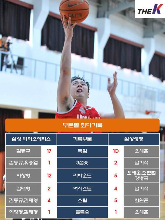 삼성 바이오에피스는 에이스 김동규가 17점 5리바운드 4스틸로 활약한 가운데, 유승엽(8점 3리바운드), 김태형(8점 10리바운드 4스틸)이 16점을 합작했다, 이창형은 팀 내 최다인 12개 리바운드를 걷어내며 권준건(8리바운드)과 함께 골밑을 지켰다. 하지만, 주전센터 권준건이 4쿼터 중반 파울아웃당하는 바람에 높이에서 균형이 무너졌다. 개인사정으로 인해 결장한 임준혁 공백이 눈에 띄었다. 여기에 유승엽 슛 감각이 좀처럼 돌아오지 않아 추격에 애를 먹었다.