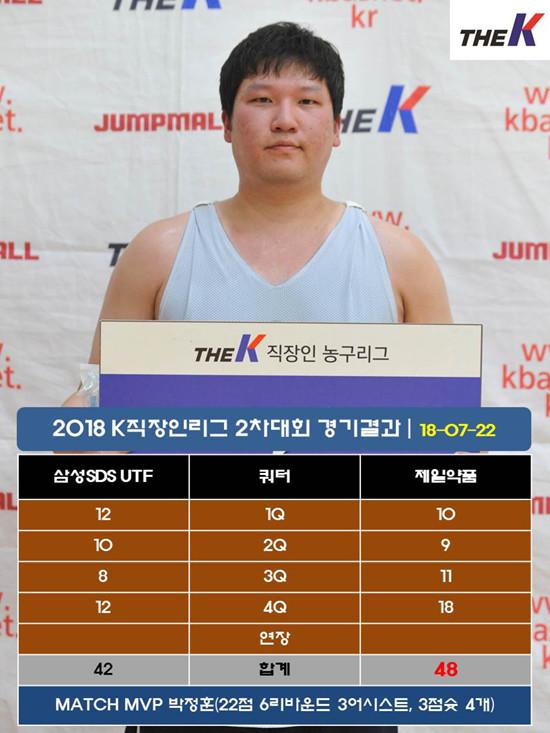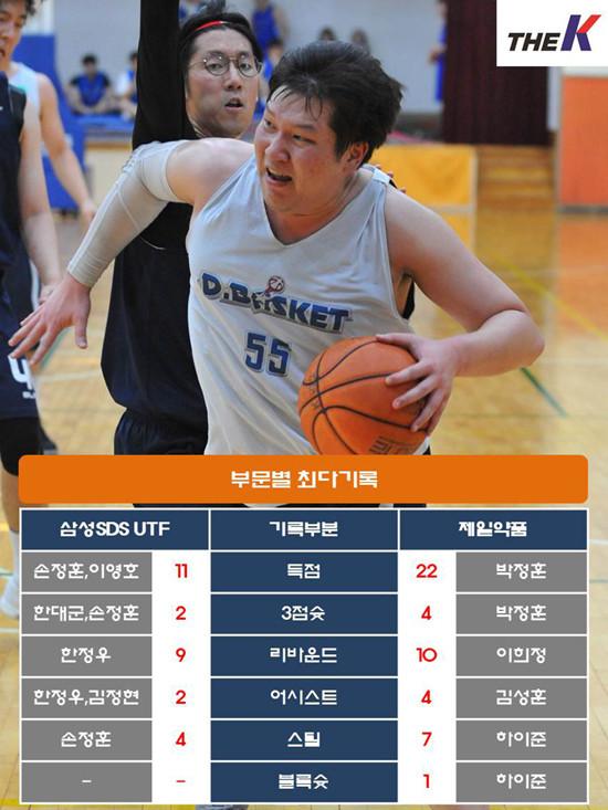 삼성SDS UTF는 에이스 최명길이 개인사정으로 인해 경기장에 나오지 않았다. 대신 손정훈(11점 4스틸 3리바운드, 3점슛 2개), 이영호(11점 6리바운드), 한대군(10점 4리바운드 3스틸, 3점슛2개)이 최명길 공백을 메우며 제일약품을 압박했다. 한정우(9점 9리바운드), 최태원(8리바운드)은 도합 17개 리바운드를 잡아내며 골밑을 든든하게 지켰다. 하지만, 승부처에서 성급한 플레이로 인하여 승리 문턱에서 또다시 한 발짝 물러섰다.