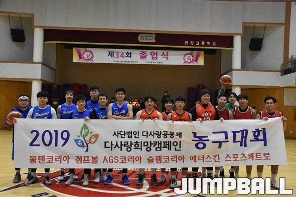 [점프볼=노경용 기자] 사단법인 다사랑공동체와 GOOD TOGETHER(굿투게더)가 공동기획으로 개최한 ‘2019 다사랑공동체 농구대회’에서 성남의 터줏대감 농사모, 불곡고등학교 OB팀 IBT, 전국구 NAO가 각조 1위를 차지하며 대회의 우승팀을 가리는 챔피언리그에 진출했다.