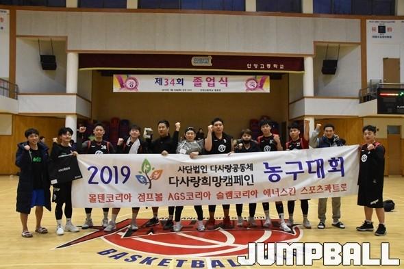 [점프볼=노경용 기자] 사단법인 다사랑공동체와 GOOD TOGETHER(굿투게더)가 공동기획으로 개최한 ‘2019 다사랑공동체 농구대회’에서 박상하, 김도우 원투펀치를 앞세워 우승을 차지했다.