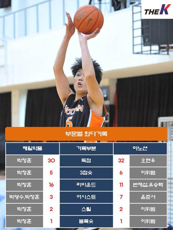 1999년 무라에다 케니치가 써낸 축구만화 우리들의 필드 후반부에서 프리맨 한명을 두고 나머지 10명이 뒤를 받쳐 세계 최강팀을 상대했다. 이노션에게서 ‘우리들의 필드’ 느낌이 났다. 오현우라는 프리맨을 두고 코트 위에 있는 나머지 4명이 그 뒤를 받치는 형태다. 오현우는 팀원들 덕에 수비 부담을 덜어내고 상대 수비진을 적극 공략했다. 이휘범, 민동일(11점 7리바운드 3어시스트, 3점슛 2개)이 외곽에서 뒤를 받쳤다. 유승택(11점 11리바운드), 변재섭(2점 11리바운드 5어시스트)이 골밑을 든든히 지켜냈고, 윤준서(3점 7어시스트 4리바운드)는 팀원들 움직임에 맞추어 꿀맛같은 패스를 건네며 팀원들 공격력을 극대화했다.