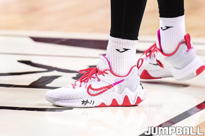 “(김)동준이가 선물해 준 커플 농구화다. '오늘 이거 신으면 잘할 거야!'하면서 줬다. 번호는 우석이, 라숀이 직접 썼다. 사실 너무 크게 써서 뭐라고 했었는데, 경기 중에 힘들어서 무릎을 잡고 있는데 신발에 있는 번호가 보였다. 힘들더라도 그 때 정신을 꽉 잡았다." 서명진의 말이다.