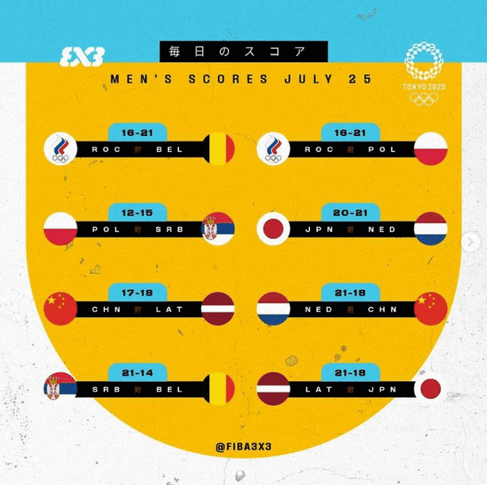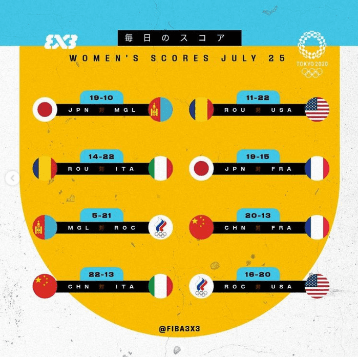 25일 도쿄 아오이 어반 스포츠 파크에서 열린 2020 도쿄올림픽 남녀 3x3 농구 예선 이튿날 일정에서 각 팀들의 승패가 벌어지기 시작했다.