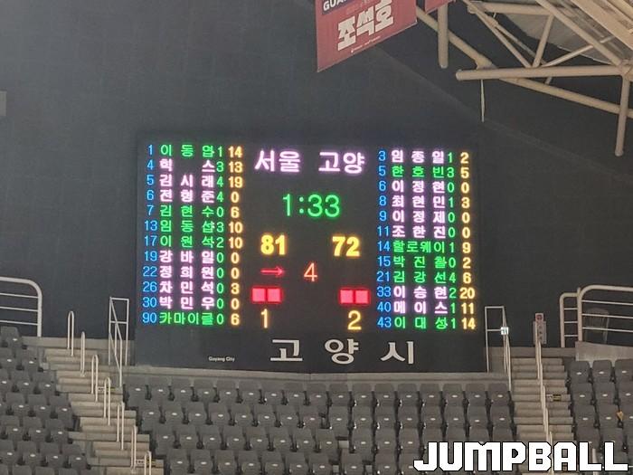 *고양체육관의 전광판, 김시래가 트리플더블에 리바운드 1개가 모자랐는지 알 길이 없다(사진/정지욱).