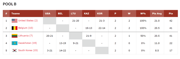 우리와 같은 조인 미국과 벨기에는 나란히 2연승을 거뒀지만 미국이 다득점에서 벨기에를 1점 차로 앞서며 B조 1위로 첫날 일정을 마쳤다.