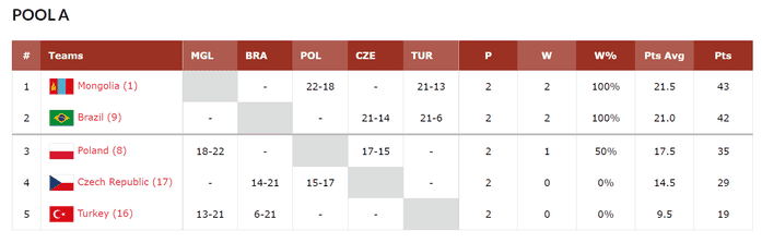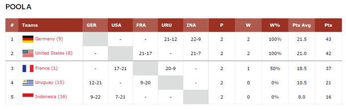 여자부 A조 경기에선 독일과 미국이 나란히 2연승을 거두며 선두권을 형성했다. 독일은 비교적 약체인 우루과이와 인도네시아를 상대로 2경기 연속 9점 차 이상의 대승을 거두며 여자부 A조 1위로 올라섰다.