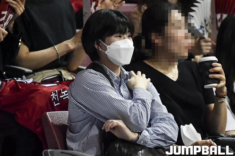 변준형의 팬이라고 밝힌 이소희는 “아는 언니와 박재한 선수와 친분이 있어서 함께 오게 됐다. 변준형 선수 팬인데 부상으로 결장한다고 들었다. 그래도 KGC 응원하러 왔다. 변준형 선수를 항상 응원하고 있다. 멋진 플레이로 좋은 모습 보여주셔서 팬으로서 기분이 너무 좋고 빨리 쾌유하셨으면 좋겠다”라고 직관 계기와 함께 응원 메시지를 남겼다.