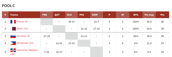 중동의 카타르도 역시나 2연승에 성공했다. FIBA 3x3 개인랭킹 세계 1위 두산 불루트를 깜짝 코치로 대동한 카타르는 C조 예선에서 필리핀, 도미니카 공화국을 상대로 2연승에 성공했다. 카타르는 역시나 2연승에 성공한 같은 조의 프랑스에 다득점에서 2점 차로 밀려 조 2위에 랭크됐다.