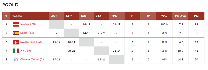 강력한 우승후보 스페인과 함께 D조에 속한 오스트리아는 스페인이 예선에서 스위스에게 16-14로 덜미를 잡히며 8강 진출의 유리한 고지를 점령하게 됐다.