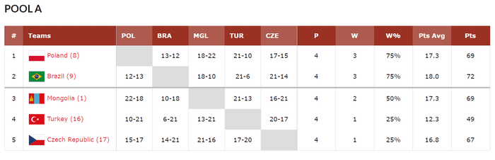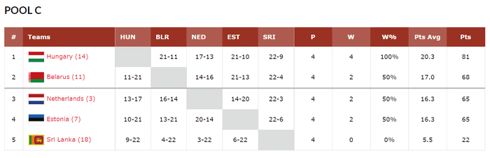 벨라루스, 네덜란드, 에스토니아가 2승2패로 동률이 된 가운데 다득점에서 벨라루스가 68점, 네덜란드, 에스토니아가 65점으로 그 뒤를 이었다. 스리랑카와 에스토니아를 상대로 21점+@ 승리를 거둔 벨라루스가 누구도 예상치 못한 8강의 주인공이 됐다.
