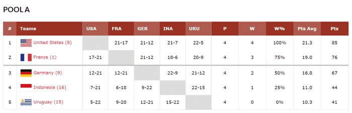 절대 1강 미국은 FIBA 3x3 여자세계랭킹 1위 프랑스와의 맞대결에서 21-17로 승리를 거두며 4연승을 완성했고, 미국에게 패한 프랑스는 3승1패로 조 2위에 랭크되며 8강에 진출했다.