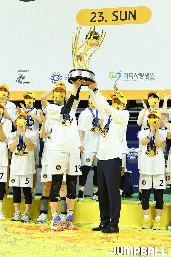청주 KB는 챔피언결정전에서도 거침없이 질주하며 아산 우리은행을 3연승으로 제압하며 챔피언에 등극했다. 2018~2019시즌에 이어 두 번째 챔피언 트로피를 들어올렸다.