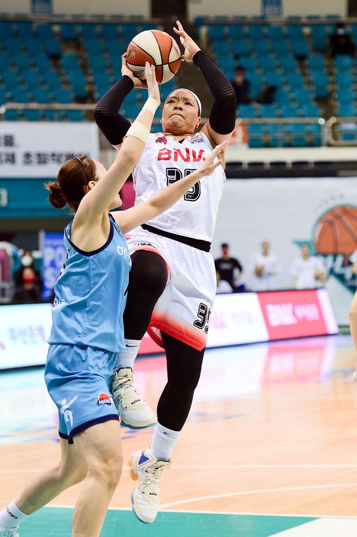 BNK는 1쿼터를 20-30으로 뒤졌지만, 2쿼터에 34점을 폭발시키며 54-48로 역전했다. 3쿼터 막판 67-67, 동점을 허용했던 BNK는 4쿼터 초반 근소한 우위 속에 박빙의 승부를 펼쳤다.