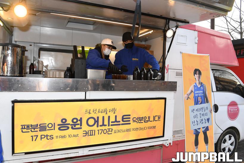 커피 170잔, 포카리스웨트 110캔, 생수 1,000병도 김시래의 트리플더블 기록(17점 11리바운드 10어시스트)과 관련이 있기에 더욱 의미가 있었다.