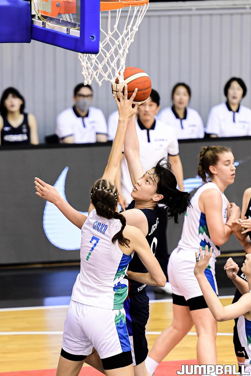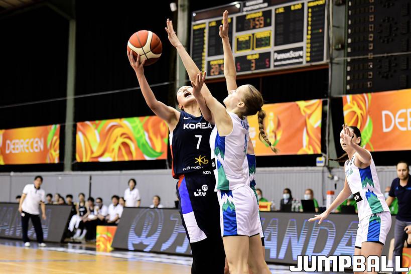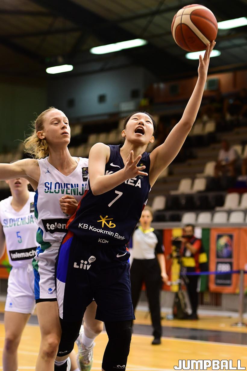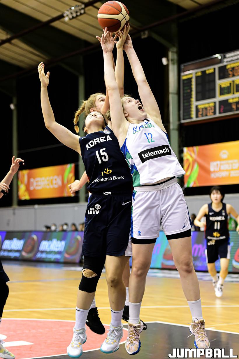 15일 헝가리 데브레첸 올라 가보 스포츠홀에서 열린 2022 FIBA U17 여자농구월드컵 한국과 슬로베니아의 9-16위 순위 결정전 경기, 한국이 슬로베니아에 61-92로 패배했다. 한국과 슬로베니아 경기 화보.