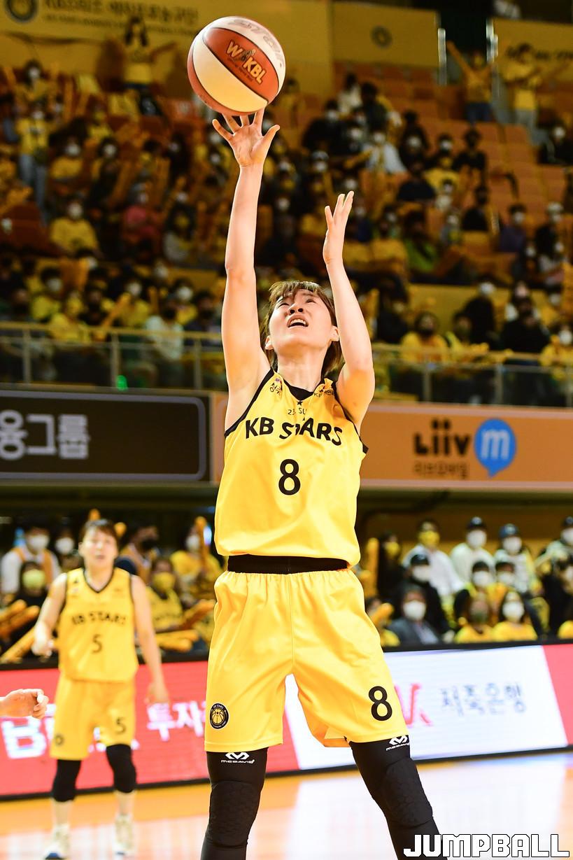 특히 김민정은 1쿼터 KB스타즈가 기선제압을 하는 데 큰 역할을 했다. 1쿼터에 10점을 쓸어담으며 팀에 리드를 안겼다. 무엇보다 득점을 만들어 가는 과정이 훌륭했다. 이타적인 움직임을 통해 골밑에서 쉬운 득점 찬스를 엿봤고, 동료들의 패스를 찰떡 같이 마무리했다. 골밑, 미드레인지, 숏코너 등 페인트 존 어느 구역에서든 득점 올리는 데 문제가 없었다.