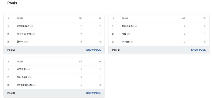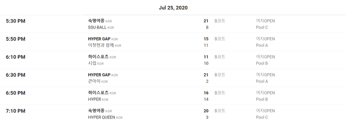 여자OPEN부 예선은 대회 이튿날인 26일 오전까지 진행될 예정이고, 위 경기 결과는 25일 펼쳐진 경기 결과이다.