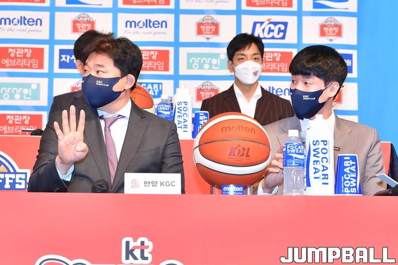 7일 리베라호텔 베르사유홀에서 열린 2021-2022 KGC인삼공사 정관장 프로농구 플레이오프 미디어데이. 플레이오프를 앞두고 각 팀 감독과 대표선수들이 참석해 입담 대결을 펼쳤다.