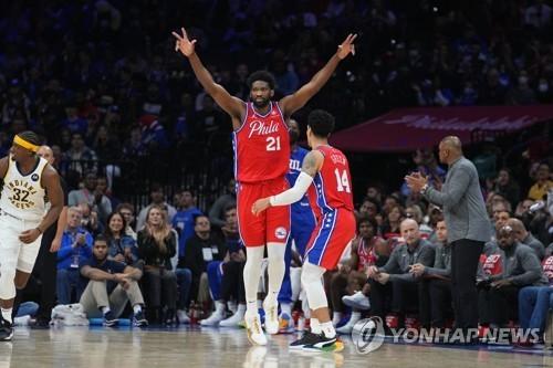 엠비드는 10일(한국시간) 미국 펜실베이니아주 필라델피아 웰스 파고 센터에서 열린 인디애나 페이서스와의 2021-2022 NBA 정규리그 홈경기에 선발 출전, 41점 20리바운드 4어시스트 2스틸로 활약했다. 3점슛 2개를 모두 넣는 등 야투율은 82.4%(14/17)에 달했다.