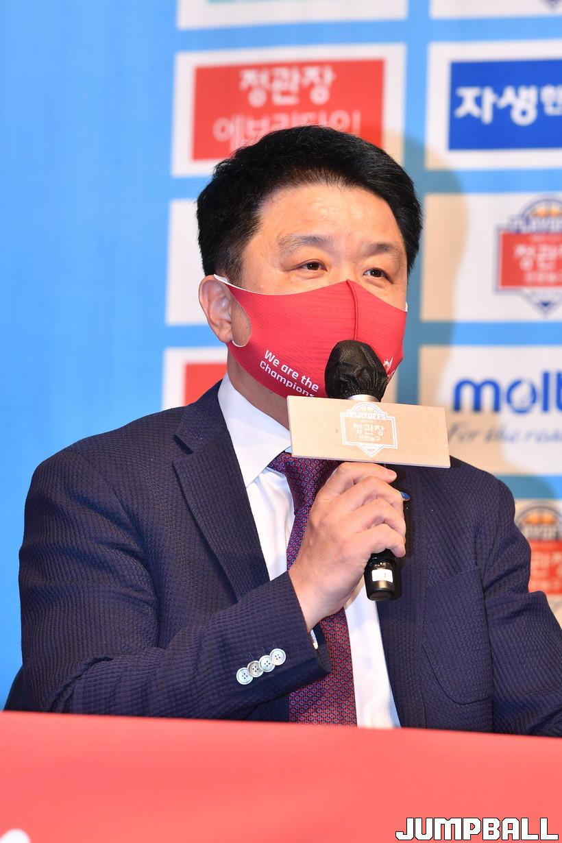 7일 서울 청담동에 위치한 리베라 호텔 베르사유룸에서는 2021-2022 KGC인삼공사 정관장 프로농구 플레이오프 미디어데이가 열렸다.