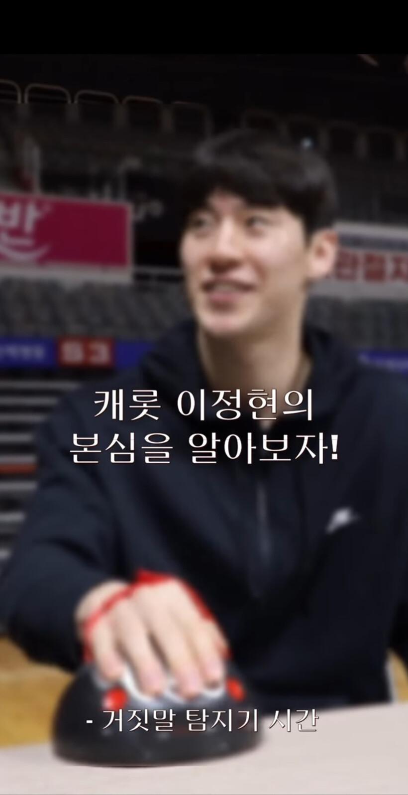 지난 점프볼 1월 호 주인공인 캐롯 이정현이 점프볼 인스타그램에 등장했다. 점프볼은 이정현에게 거짓말 탐지기를 내밀었고! 순진한(?) 이정현은 덥석 거짓말 탐지기에 손을 넣었다. 첫 번째 질문은 ‘나는 삼성의 이정현보다 잘 될 자신이 있다’였는데 이정현은 “네!”라고 당차게 대답했다. 그는 긴장한 표정으로 자신의 운명을 기다렸는데 결과는 거짓! 흘러나오는 전기에 이정현은 “으아아아아악” 소리를 질렀다. 이후 계속되는 질문에 진실은 없었고 이정현은 전기 충격을 받아야만 했다.