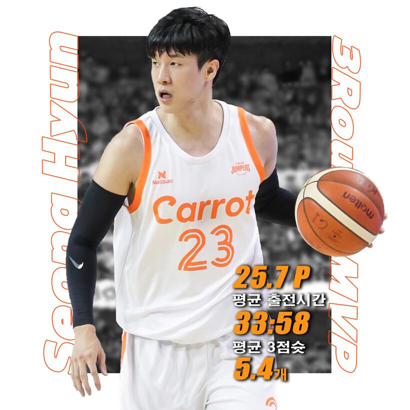 캐롯 전성현은 올 시즌 1라운드 MVP에 이어 3라운드 MVP를 수상했다. 3라운드 캐롯의 전적이 3승 6패임에도 유효 투표수 91표 중 61표를 획득하며 전주 KCC 허웅을 제치고 3라운드 MVP에 선정됐다. 그는 3라운드 평균 33분 58초를 출전해 25.7점(리그 2위/국내 1위), 3점슛 평균 5.4개(리그 1위)를 기록했다. 3라운드 MVP 카드뉴스에 팬들은 ‘최근 몇 년간 이 정도 폼을 보여준 선수는 없었다’ ‘그가 가는 길이 곧 새로 쓰일 역사’라며 점프볼과 함께 전성현을 축하했다.그는 과연 역대급 슈터인가?