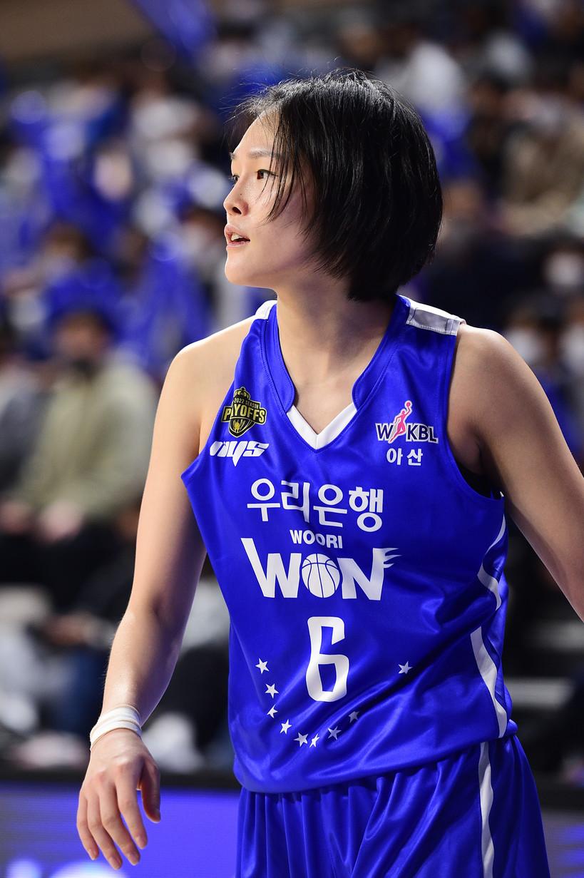 아산 우리은행은 지난 5일 아산이순신체육관에서 열린 삼성생명 2021-2022 여자프로농구 인천 신한은행과의 4강 플레이오프 1차전에서 90-65로 승리했다. 그러나 마냥 웃을 수는 없었다. 주축 포워드 최이샘이 3쿼터 막판 왼쪽 어깨 부위에 통증을 느끼고 코트를 빠져나간 것이다.