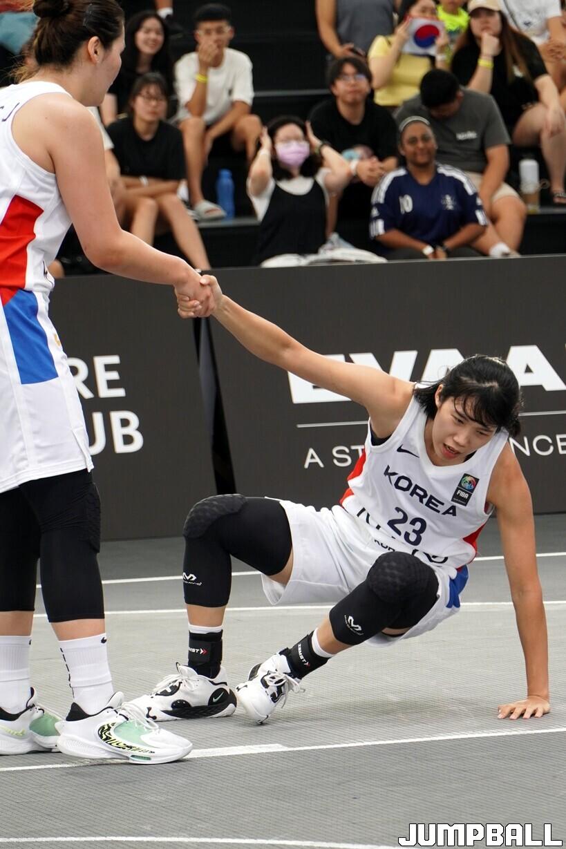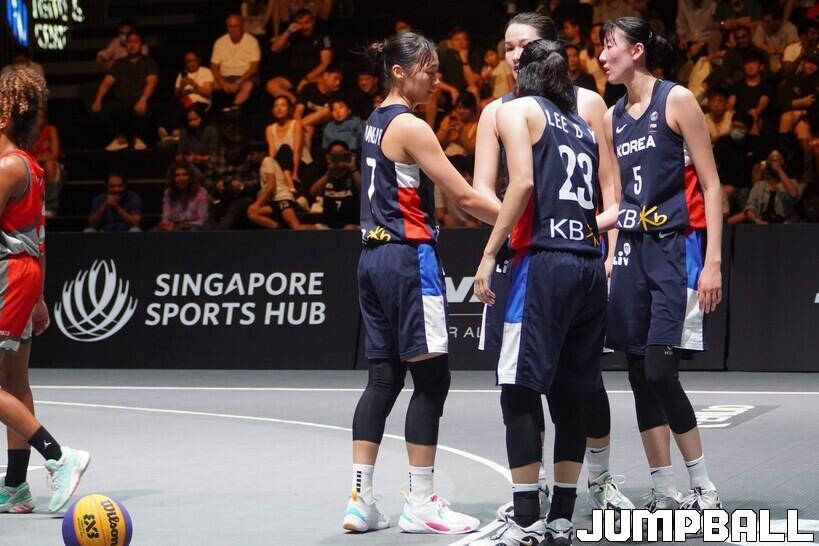 FIBA 3x3 규정에 따르면, 이런 상황에서 퀄리파잉 드로우 조 2위 중 높은 승률의 팀이 진출한다. 2승 1패를 기록한 여자 대표팀은 승률 66%로 A조 2위 인도의 상황 지켜봤다.
