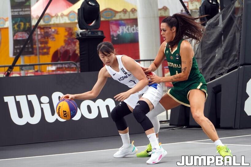 2시간 뒤, 여자 대표팀도 OCBC 스퀘어를 찾아 퀄리파잉 드로우 마지막 경기, 오후 3시 30분 호주전을 준비했다. 여자 호주팀은 전날 뉴칼레도니아를 21-0, 카자흐스탄을 21-2로 눌렀다. 3x3는 10분 경기지만 21점을 먼저 넣으면 시간과 상관없이 경기가 끝난다. 점수에서 알 수 있듯 호주는 두 경기 연속 일찍 경기를 끝냈다.