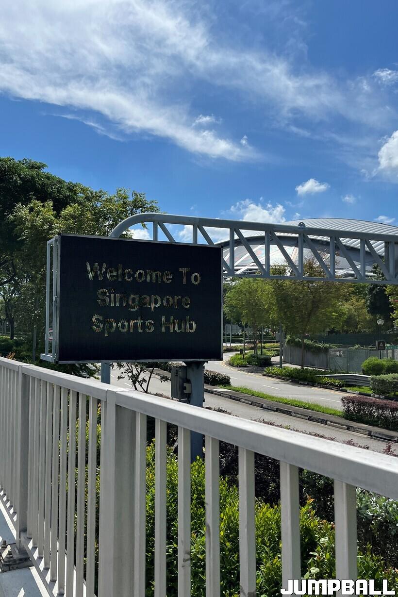 40여 분을 걷고 대회가 열리는 싱가포르 스포츠 허브 OCBC 스퀘어에 도착했다. 야외에 설치된 경기장 위에는 천장이 있었다. 그늘이 있지만 현지 날씨를 제대로 느낄 수 있는 환경. 경기장과 이어진 건물에는 카페, 식당, 쇼핑 등을 즐길 수 있는 복합 시설이 있었다.