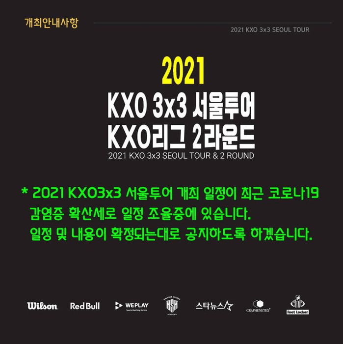 오는 7월31일과 8월1일 이틀간 서울 건대 커먼그라운드에서 개최 예정이었던 '2021 KXO 3x3 서울투어 및 KXO리그 2라운드'도 일정 연기를 논의 중이다.