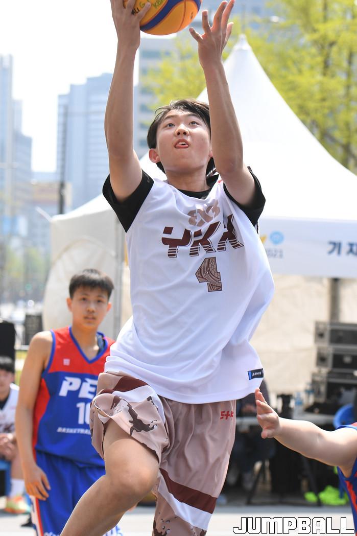 11일 서울신문사 앞 특설코트에서 열린 KB국민은행 Liiv M 3x3 코리아투어 2021 1차 서울대회(이하 코리아투어) 중등부 4강전에서 원주 YKK가 PEC A와 연장까지 가는 접전 끝에 15-13으로 신승을 거두고 결승 진출에 성공했다.