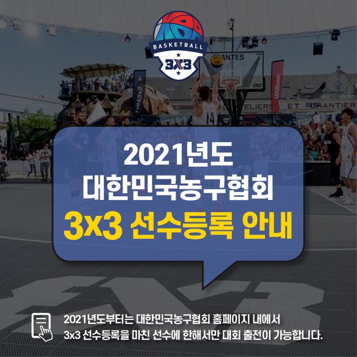 이에 따라 2021년도부터는 협회 홈페이지에서 3x3 선수등록을 완료하여야만 협회가 주최하는 3x3 대회에 참가할 수 있다. 또한, 협회는 자체 3x3 랭킹시스템을 만들어 협회 주최 대회 참가에 따른 랭킹포인트를 부여하고, 홈페이지를 통해 국내 선수 랭킹을 제공한다. 이 랭킹은 추후 국가대표 선발전 참가 자격요건 중 하나로 활용되며, 이를 바탕으로 매년 우수 선수를 시상하는 등 등록 선수에게 다양한 혜택을 제공할 예정이다.