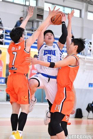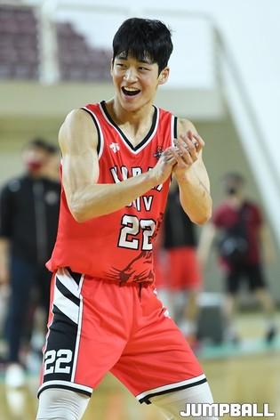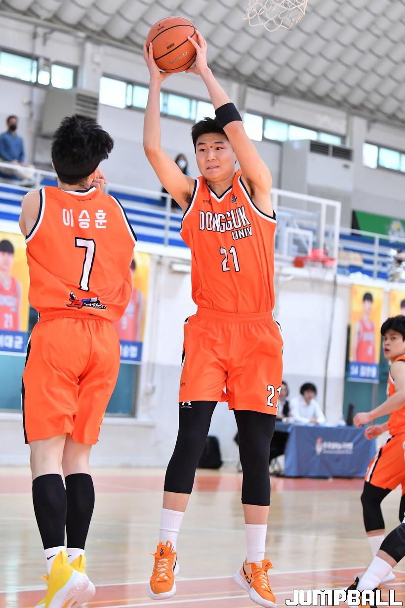 27일 서울 동국대 실내체육관에서 열린 2022 KUSF 대학농구 U-리그 동국대와 조선대의 경기, 동국대 이대균이 리바운드를 잡아내고 있다.