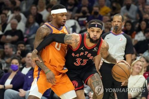 토론토 랩터스는 12일(한국시간) 피닉스 풋프린트 센터에서 열린 2021-2022 NBA 정규시즌 피닉스 선즈와의 원정 경기에서 117-112로 승리했다.