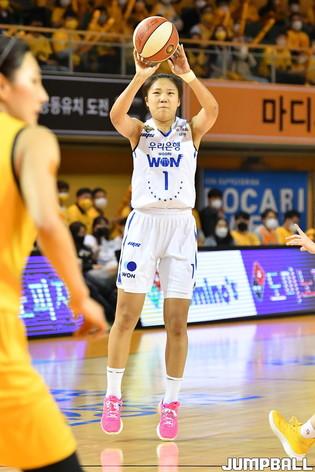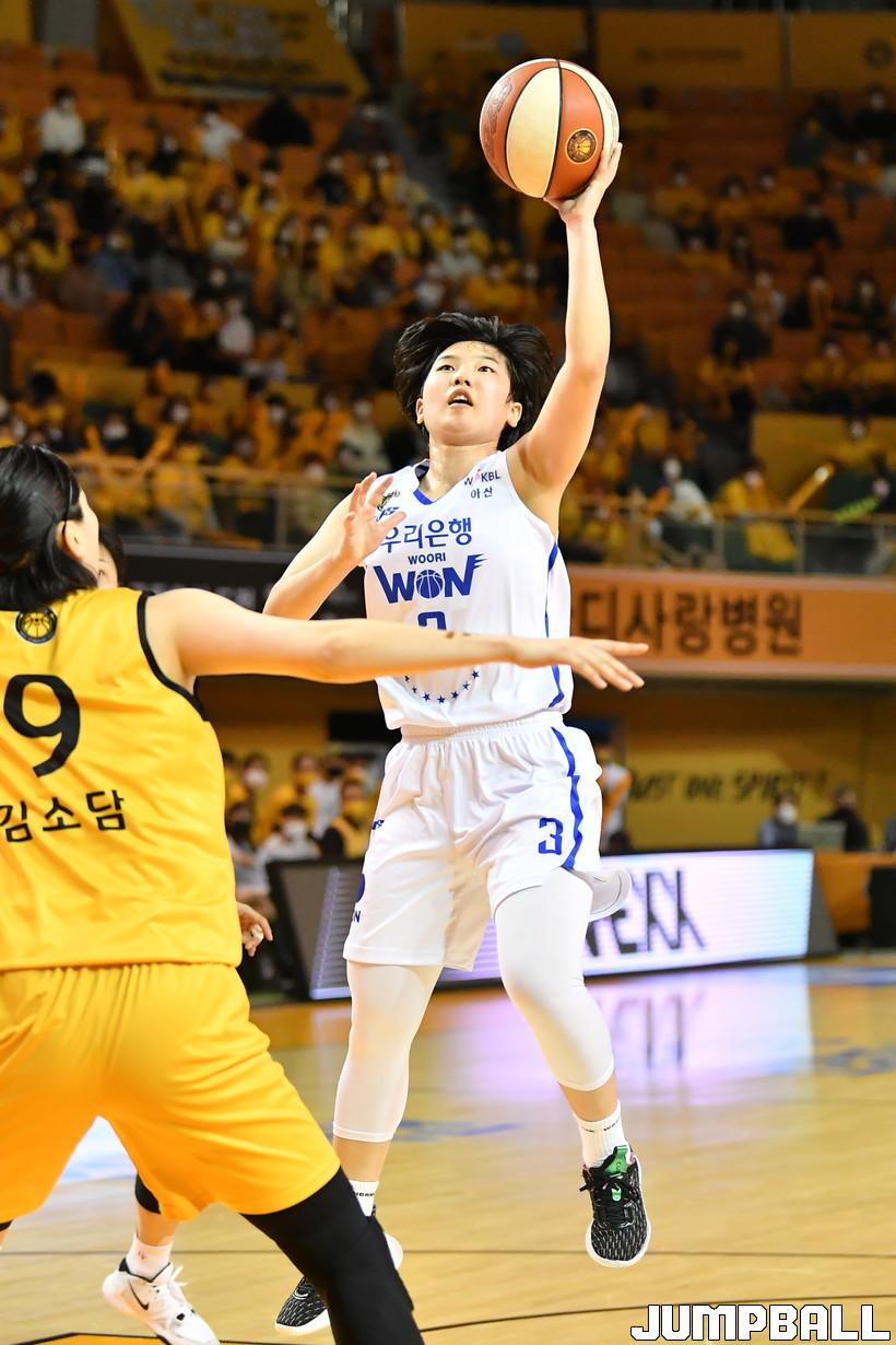 [JB포토] 끝까지 최선을 다해 슛을 시도하는 우리은행 김은선