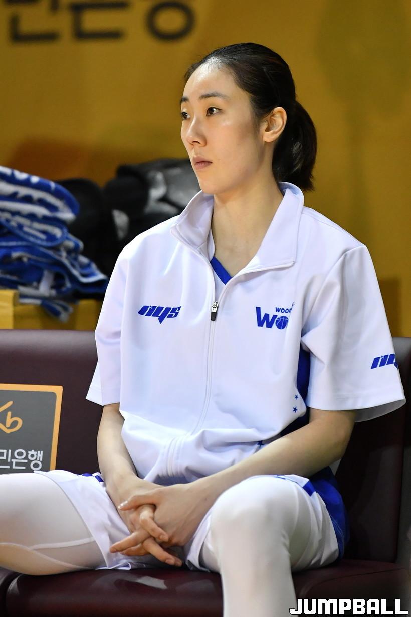 10일 청주실내체육관에서 열린 '삼성생명 2021-2022 여자프로농구 챔피언결정전 1차전' 청주 KB와 아산 우리은행의 경기. 우리은행 박혜진이 벤치에 앉아 경기를 관전하고 있다.