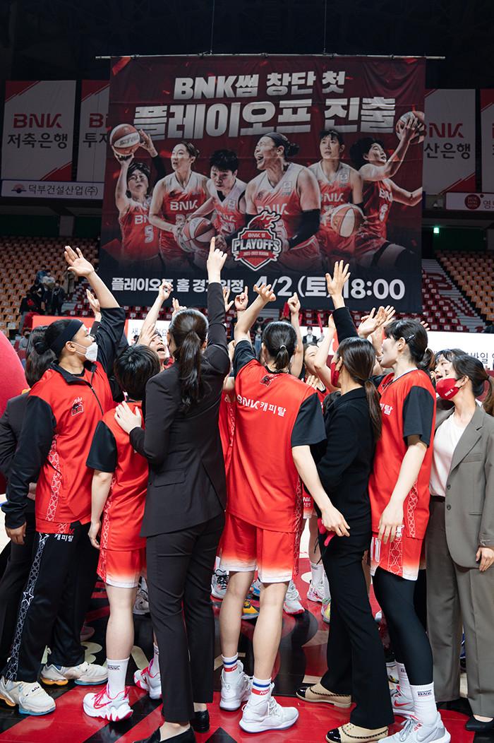 BNK는 올 시즌 창단 첫 플레이오프 진출에 성공했다. 시즌 마지막까지 삼성생명과 치열한 경쟁을 벌인 끝에 정규리그서 4위를 차지, 꿈의 무대인 플레이오프를 경험했다.