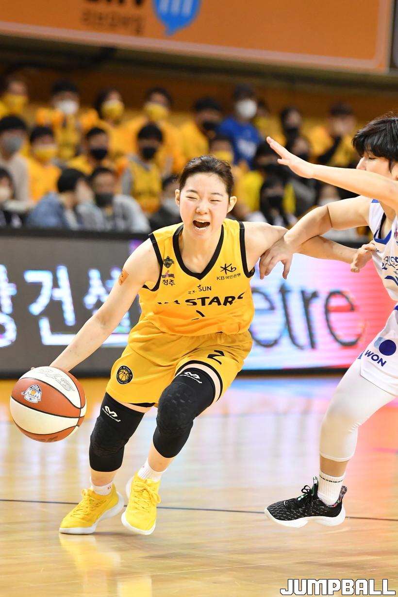 10일 청주실내체육관에서 열린 '삼성생명 2021-2022 여자프로농구 챔피언결정전 1차전' 청주 KB와 아산 우리은행의 경기에서 KB가 78-58로 승리를 거뒀다. KB-우리은행 경기화보.