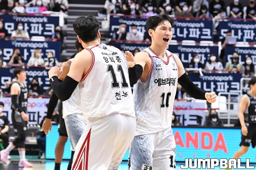 변준형(14점 3점슛 3개 5리바운드 10어시스트)이 팀 공격을 이끌었고, 전성현(19점 3점슛 4개 4리바운드)과 대릴 먼로(22점 7리바운드 8어시스트)도 제몫을 했다. 문성곤(7점 11리바운드)의 지치지 않는 수비도 큰 힘이 됐다.